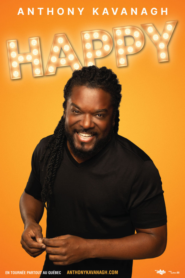 Design graphique de l'affiche du spectacle Happy d'Anthony Kavanagh.